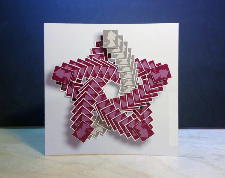 2015's card design took inspiration from the christmassy silver first class stamps being used in the UK.